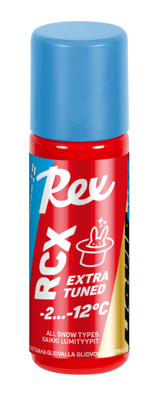 RCX Sininen on optimaalisella määrällä Rex Racing Service “77” ja “83” -fluoripulvereita boostattu korkeafluorinen nesteluisto. Näillä eväillä syntyy maailmacup-tason luisto laajalla kelialueella. Erityisen liukas RCX Sininen on 77- ja 83-pulvereiden optimikelillä, eli uudehkolla sekalumella. Rexin tuotekehitystiimin laatima resepti kattaa yleisimmät talven lumikelit!