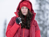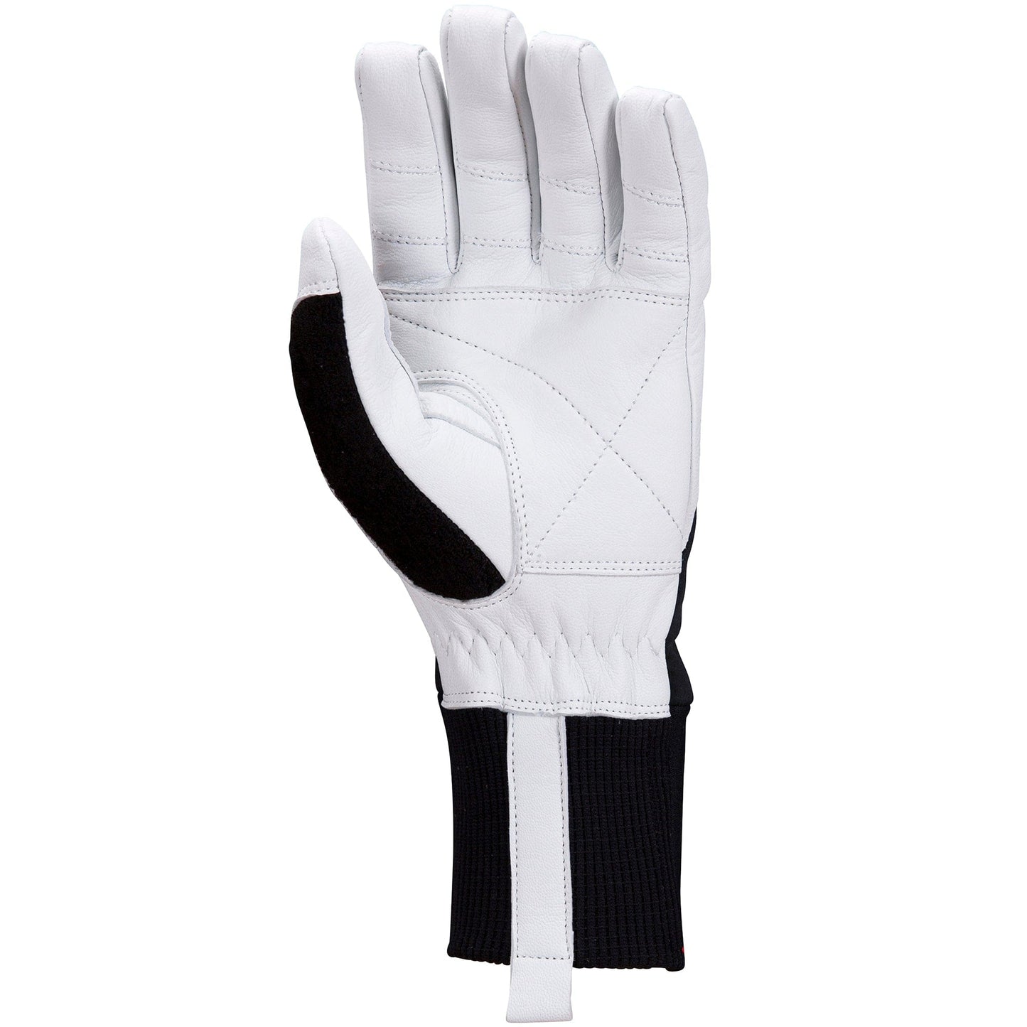 Tuulen pitävä hanska, missä on nahkainen kämmen osa.